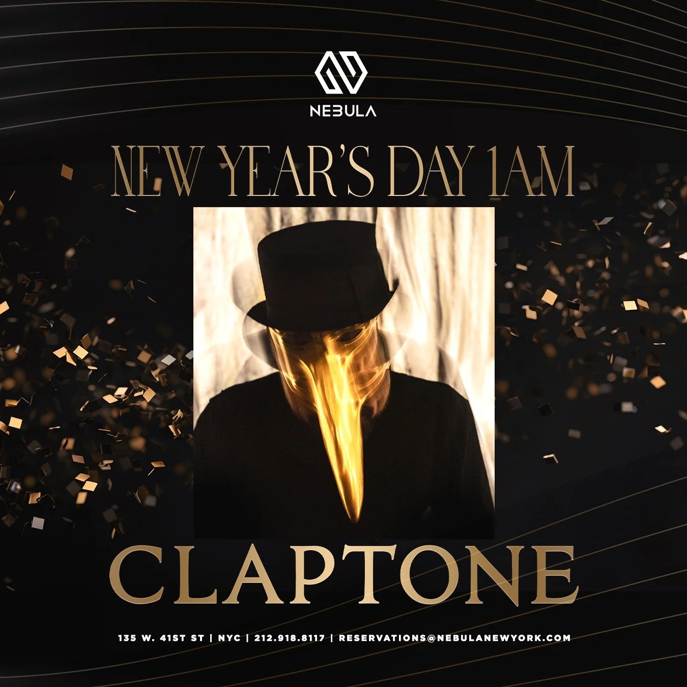 Make New Year’s Eve memories at Nebula (135 W. 41st St) during their New Year's Eve party, featuring a live DJ set from Claptone. Guests are in for an unforgettable night with high energy vibes, and the greatest house and tech house hits. Doors for this electrifying party open at 11PM, when the live music begins, and it rages on until 4AM. Tickets are priced at $68.90, and can be purchased by visiting NebulaNewYork.com. Reservation inquiries can be made by contacting Nebula at reservations@nebulanewyork.com. Prepare to immerse yourself in the pulsating beats and vibrant atmosphere as you bid farewell to the old and usher in the new year at Nebula's NYE bash.