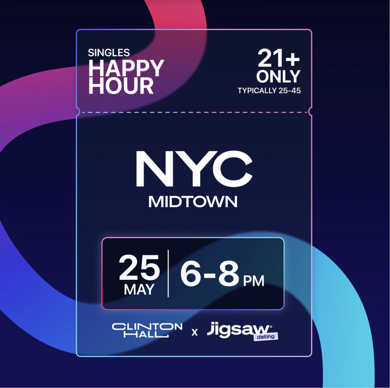 Calling all singles! Find your match at Clinton Hall (16 W 36th St.) on Saturday, May 25th during Jigsaw’s Dating Meetup from 6pm to 8pm. Attendees can discover their potential match with @jigsaw.dating while enjoying a fun happy hour courtesy of Clinton Hall! Whether you're flying solo or bringing along your single pals, this event is a can't-miss opportunity to mingle with other singles and indulge in a complimentary welcome drink, mixer-style mingling, our signature #DeeperDating Puzzle Activity (with a chance to win free drinks), custom conversation starter cards, and a dedicated Jigsaw host. This 21+ event is open to individuals of all sexual orientations with the typical age range being 25-45. Secure your spot now as tickets, priced at $21.99, are limited, available at https://store.jigsaw.co/products/new-york-city-may-singles-happy-hour or via the link in @jigsaw.dating’s bio!