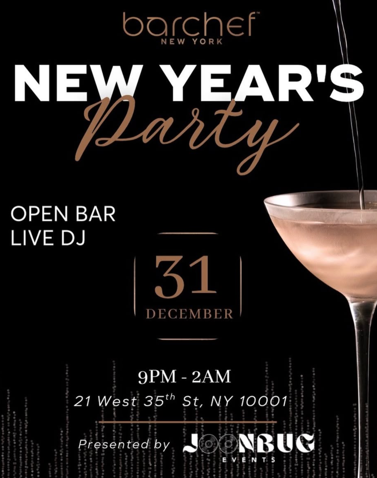 Tickets: https://joonbug.com/newyork/newyearseve/new-years-eve-party-barchef-manhattan-midtown