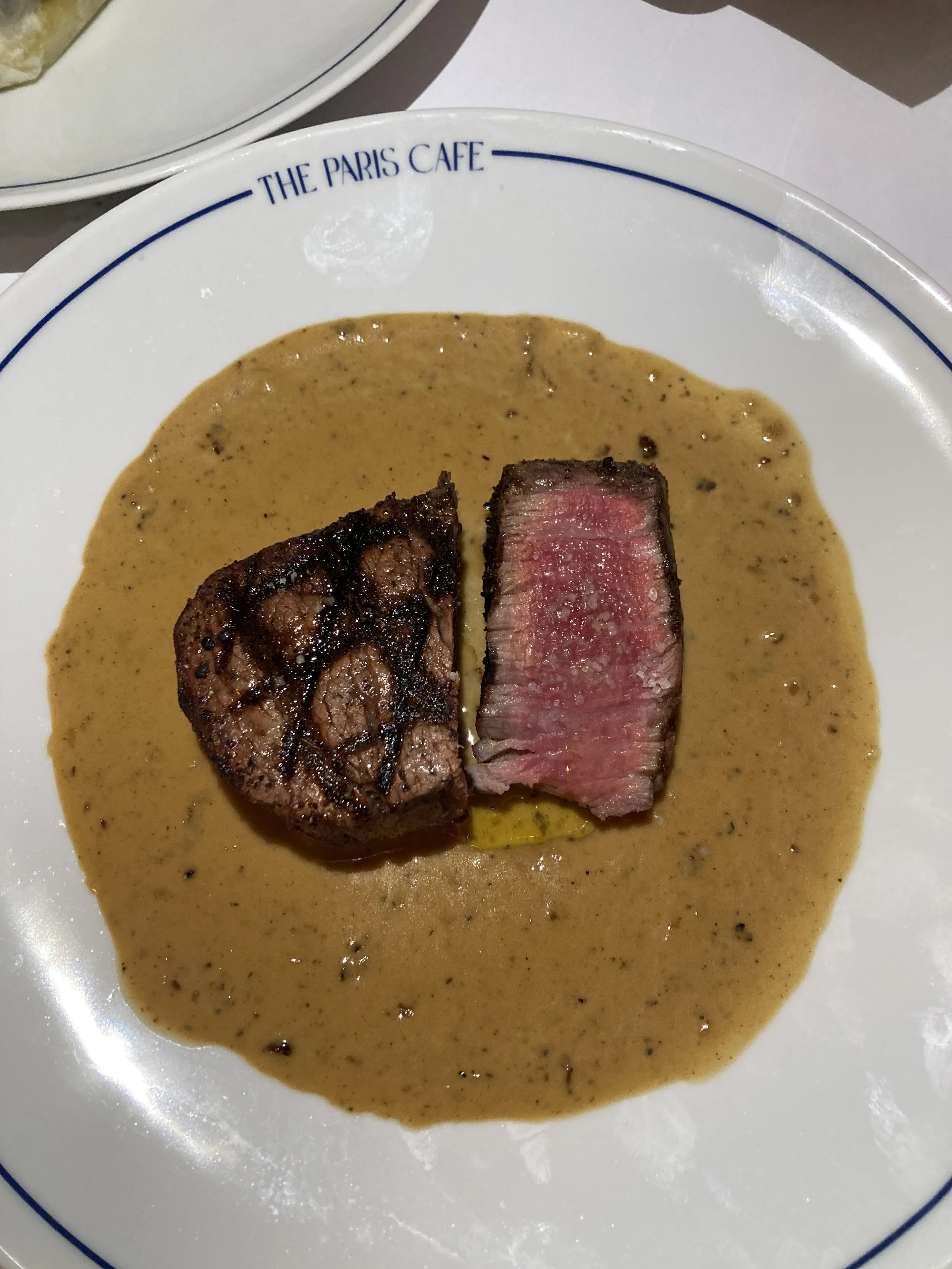 But the dish we’ll be dreaming about for weeks? The Steak Frites au Poivre, cooked to a perfect medium-rare and bathed in a peppercorn sauce so divine we considered asking for it by the bottle.