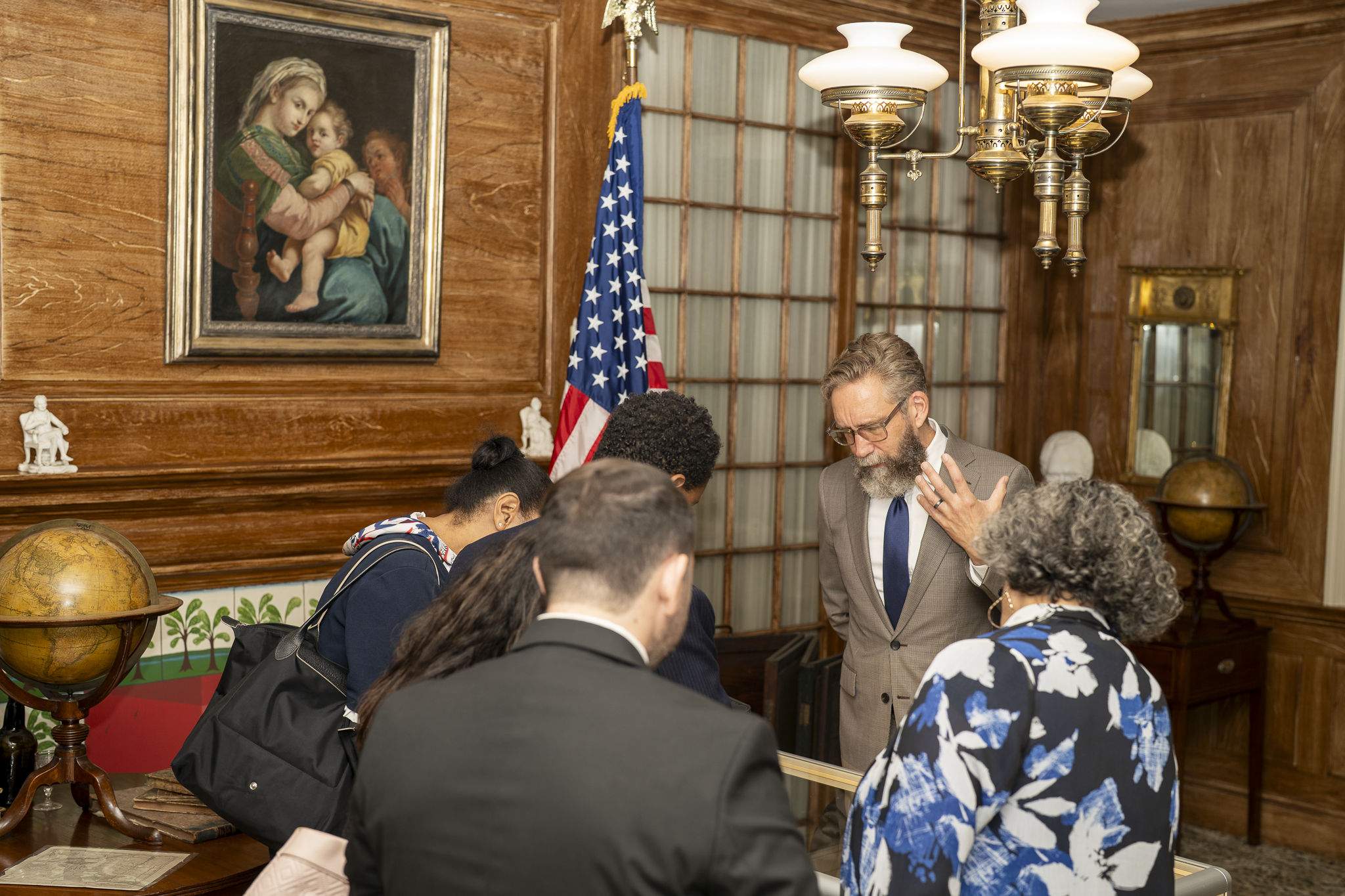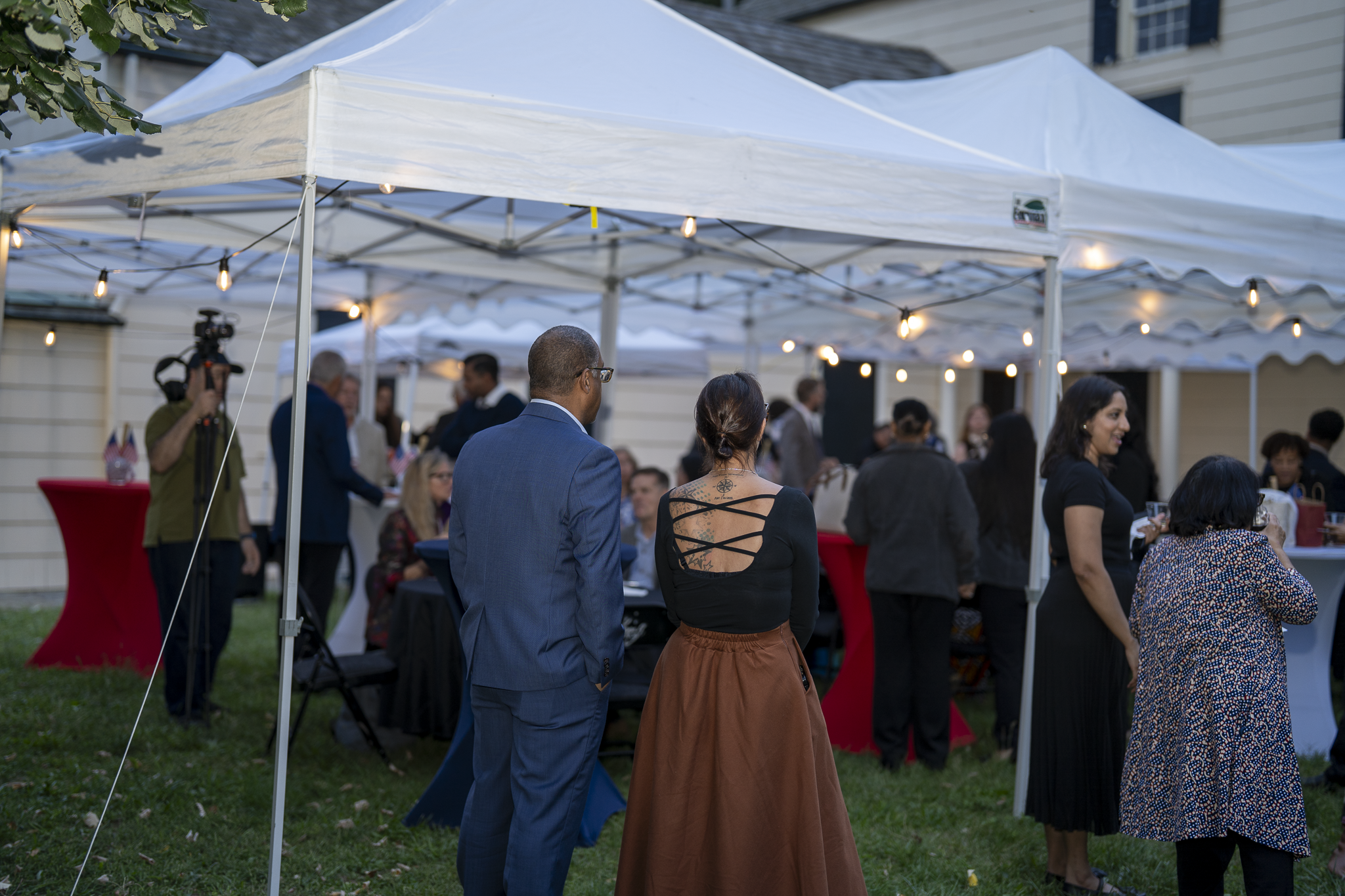 Guests enjoyed an open bar of handcrafted cocktails, curated hors d’oeuvres, and live music while exploring the landmark estate that preserves the legacy of Rufus King—an early U.S. Senator, signer of the Constitution, and outspoken opponent of slavery. On display in the parlor room was a rare treasure: an original copy of the U.S. Constitution with annotations by Rufus King himself. Queens District Attorney Melinda Katz reflected after viewing the document: “We are the United States of America, we do welcome changes, differences of opinion, and we welcome debate.” King Manor’s Executive Director, Kelsey Brow, echoed the theme of civic learning, adding, “We lead with a spirit of learning from the world around us and challenging perceived notions. At King Manor, we make our visitors feel like empowered learners, interested in thinking about why things are the way they are and what they can do to make things better.”