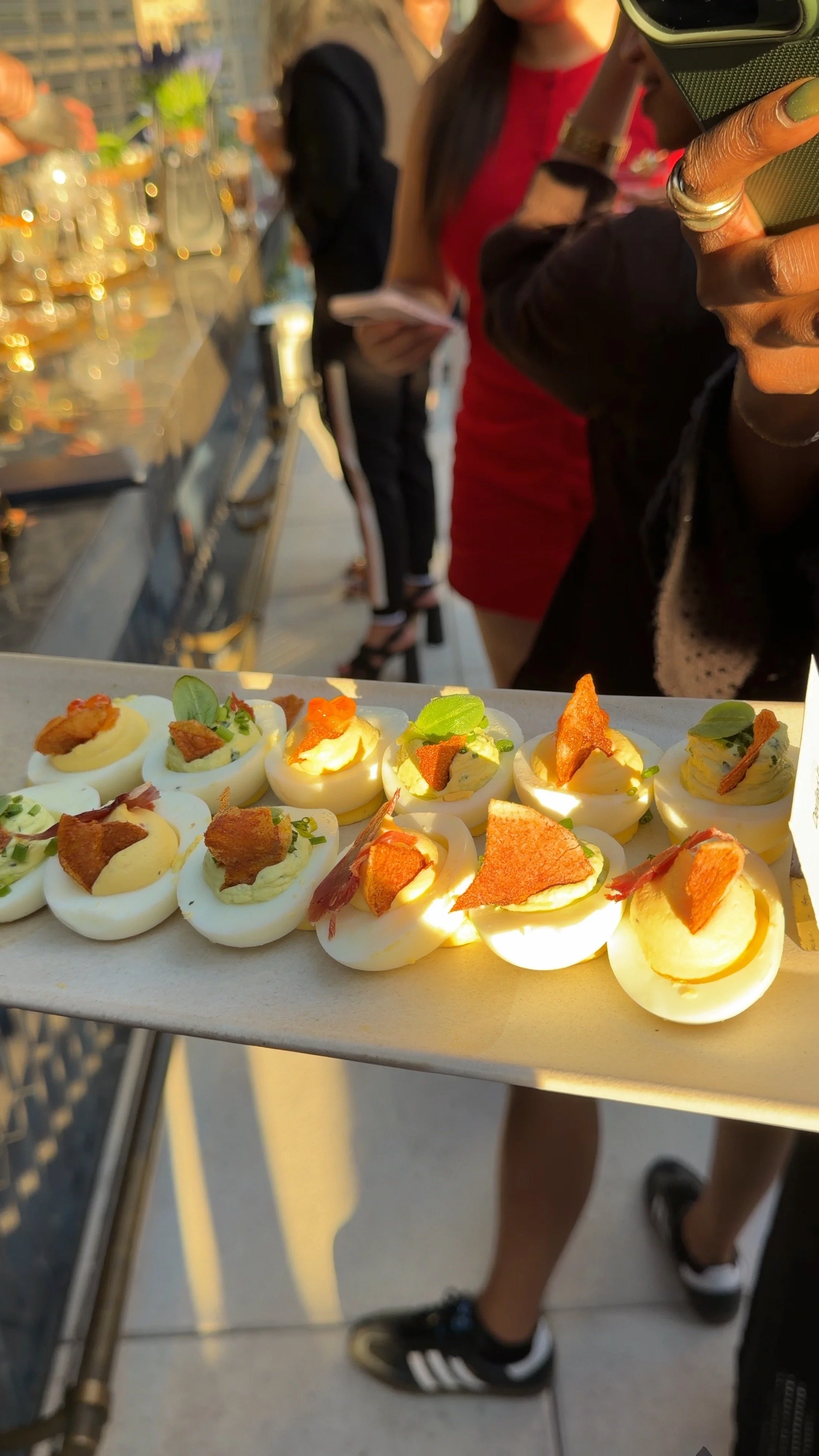 Golden Hour at One40 also introduces a focused rooftop-friendly menu and cocktail program. Among the standout offerings is the Golden Hour Martini & Caviar, featuring Kaluga caviar and warm pomme crisps alongside an Altius Martini made with vodka, gin, Italicus bergamot, and pear. Other shareable options include a Deviled Eggs Flight with variations like classic, salmon roe, Iberico, and caviar, along with Fried Oysters served with lemon aioli.