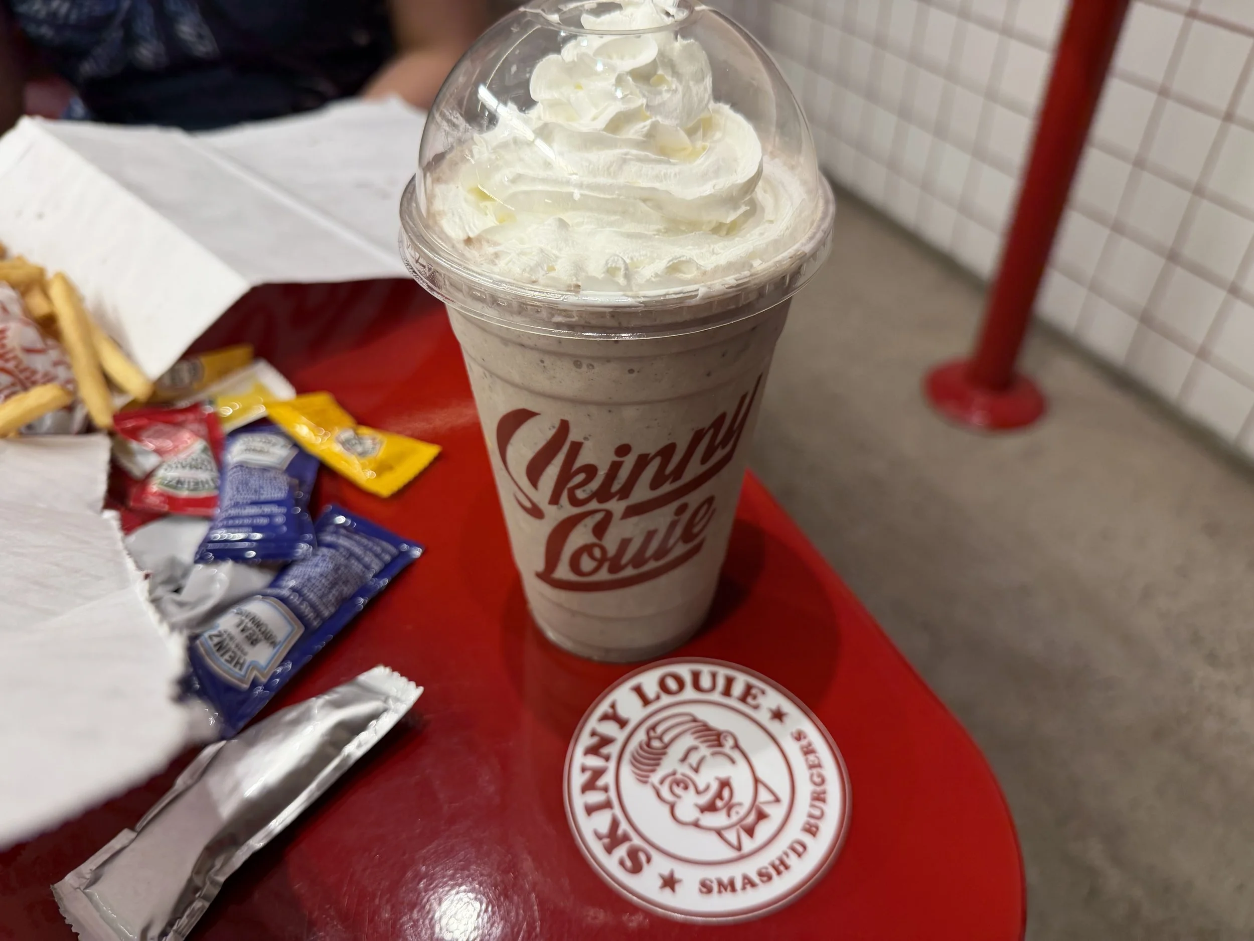 The concept keeps things intentionally straightforward. Skinny Louie’s smash burgers are made with 100% fresh Black Angus beef, seasoned simply with salt and pepper, then cooked on a hot griddle to develop a deeply caramelized crust. Burgers, fries, shakes, and house sauce form the core of the menu, keeping the focus where it belongs.